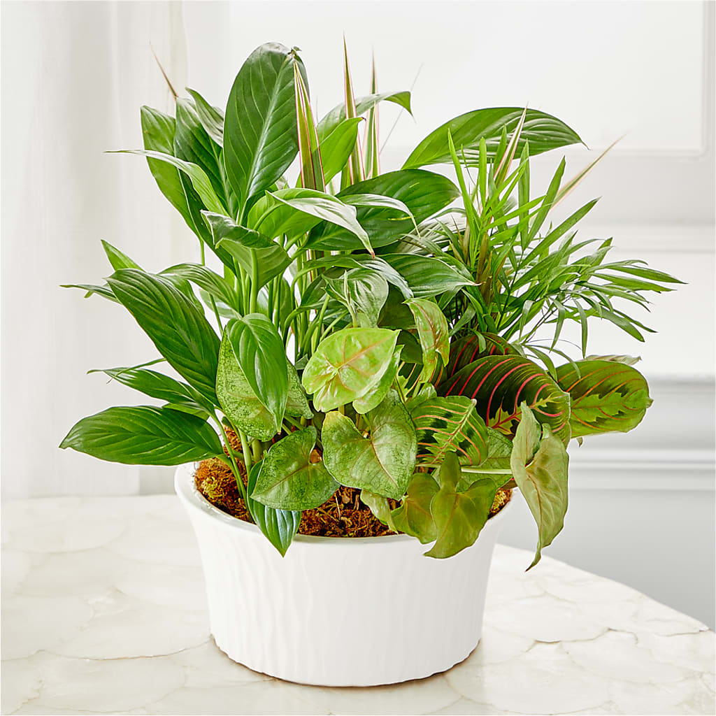 Gift the uplifting benefits of green plants with the Balance & Harmony Dishgarden to add energy, fresh air, and positivity into their space.