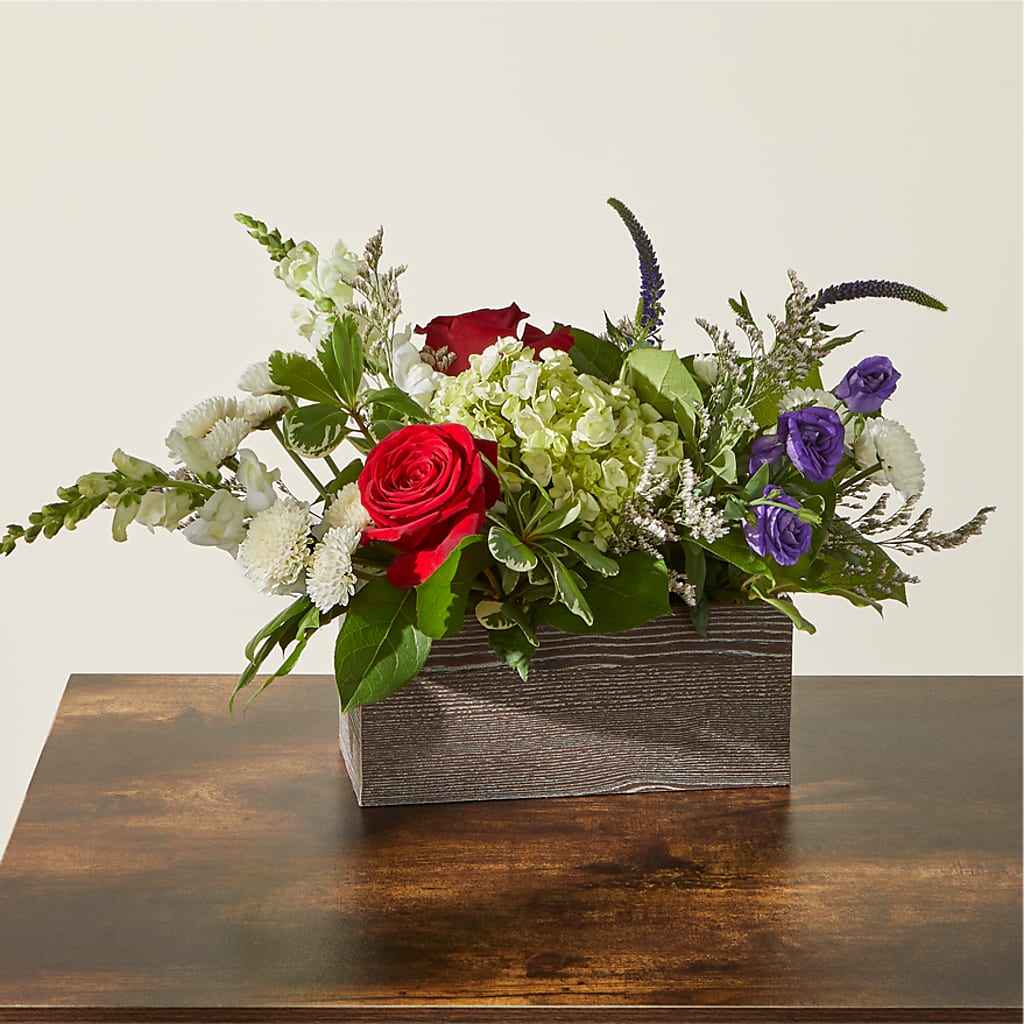 • Designed by florists in a brown wooden box, ready to display.